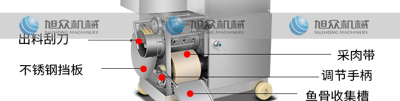 XZC-160型魚肉采肉機(jī),去刺干凈、高效出肉。加工魚肉去刺、蟹蝦去殼等。手工去魚刺太累了,傳統(tǒng)的魚糜加工中,手工去魚皮魚刺,既費(fèi)時又費(fèi)力不小心就會傷到手。