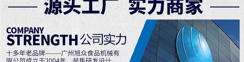 廣州旭眾食品機械有限公司是一家集科研開發(fā),生產設計,營銷服務為一體的現代化生產企業(yè)?,F代化生產車間,精湛制造技術,所產機械歷經市場重重考驗,不斷贏得海內外客戶的贊譽。