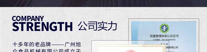 廣州旭眾食品機械有限公司是一家集科研開發(fā),生產(chǎn)設計,營銷服務為一體的現(xiàn)代化生產(chǎn)企業(yè)?,F(xiàn)代化生產(chǎn)車間,精湛制造技術,所產(chǎn)機械歷經(jīng)市場重重考驗,不斷贏得海內外客戶的贊譽。