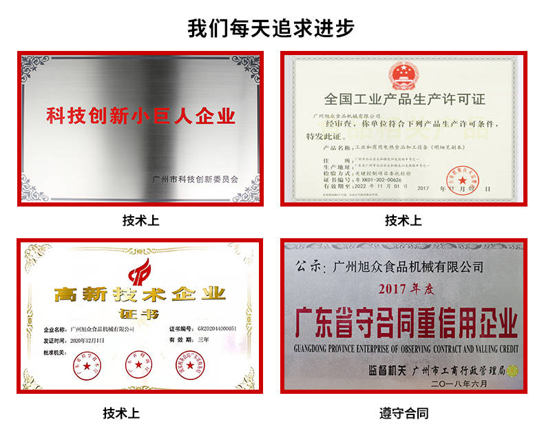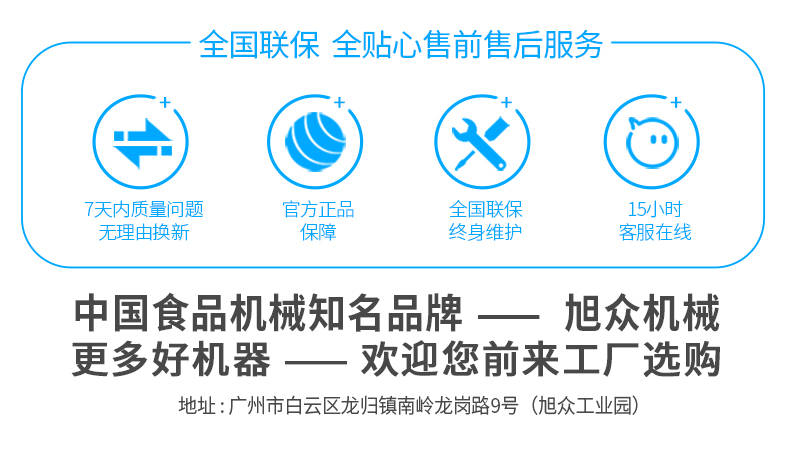 廣州旭眾食品機(jī)械有限公司是一家集科研開(kāi)發(fā),生產(chǎn)設(shè)計(jì),營(yíng)銷(xiāo)服務(wù)為一體的現(xiàn)代化生產(chǎn)企業(yè)?,F(xiàn)代化生產(chǎn)車(chē)間,精湛制造技術(shù),所產(chǎn)機(jī)械歷經(jīng)市場(chǎng)重重考驗(yàn),不斷贏得海內(nèi)外客戶的贊譽(yù)。